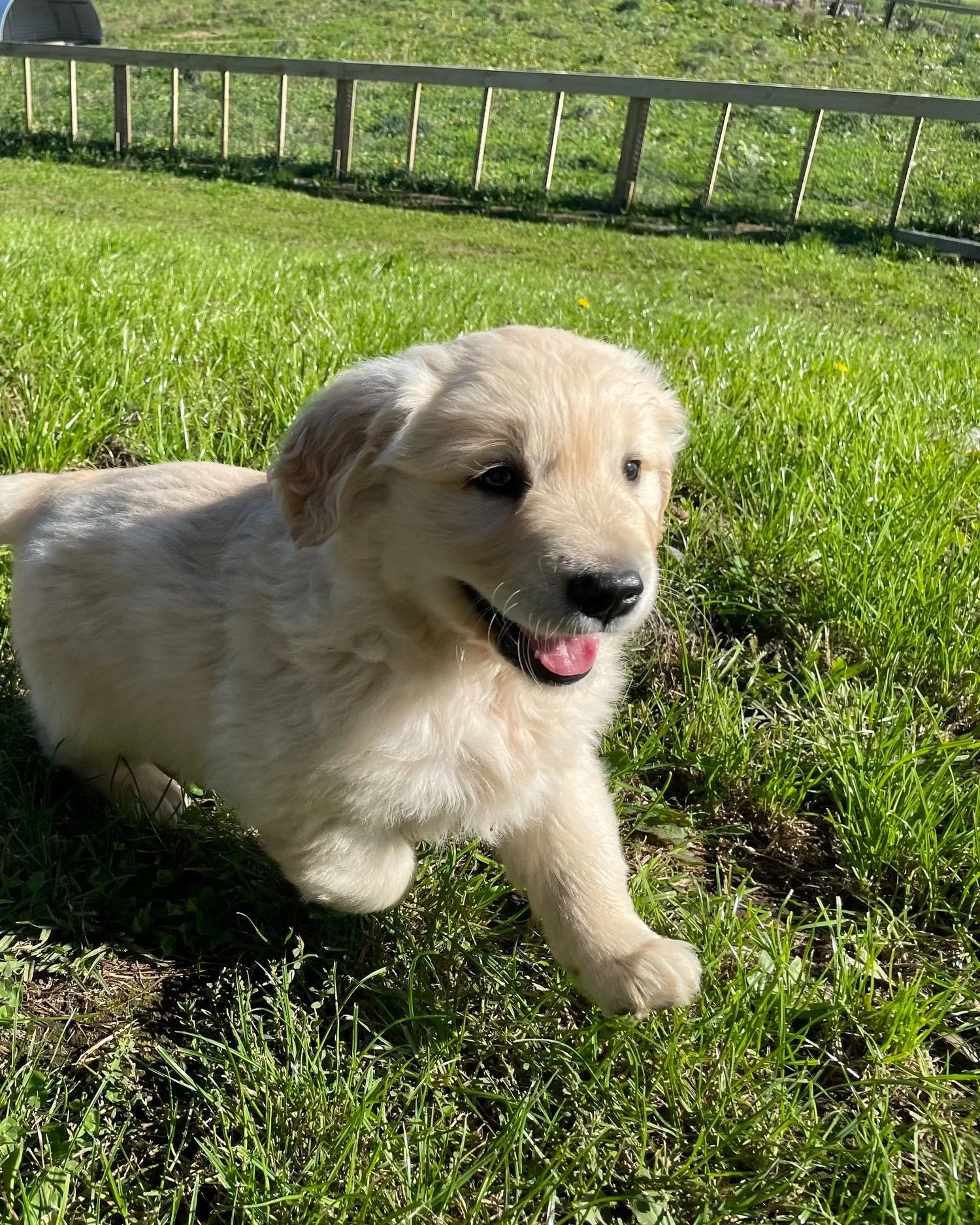 Our latest litter of charming Golden Retriever puppies was born on 21 March 2025, and we currently have seven delightful puppies available, eagerly waiting to find their forever homes!